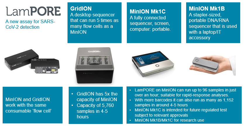 LamPORE is the first assay that the Company has developed in-house with intended use in diagnostic applications, subject to relevant authorisations that the Company is currently pursuing. Oxford Nanopore is planning to deploy LamPORE for COVID-19 in a regulated setting initially on GridION and soon after on the portable MinION Mk1C.